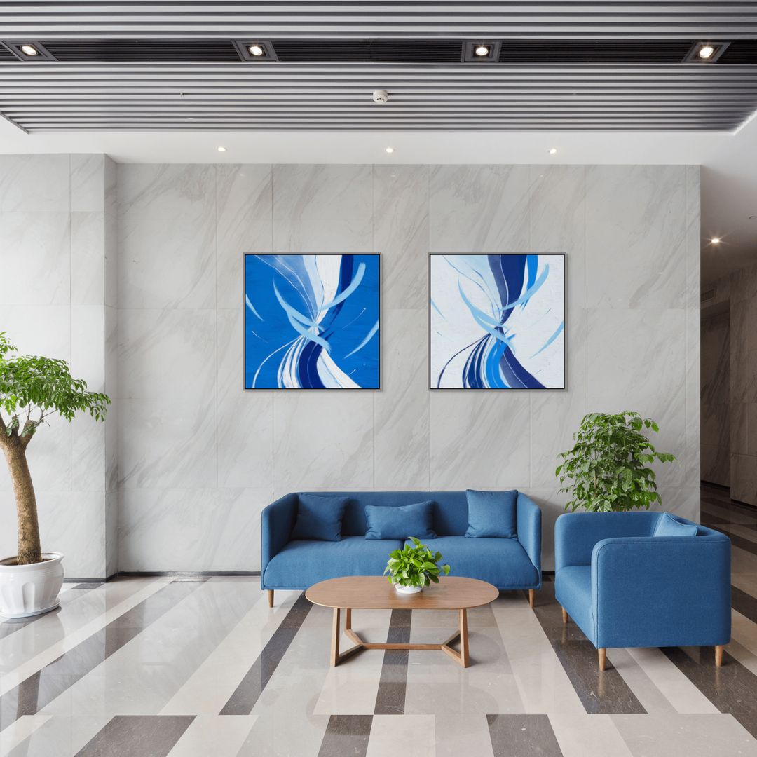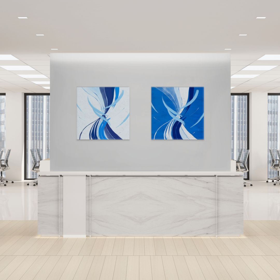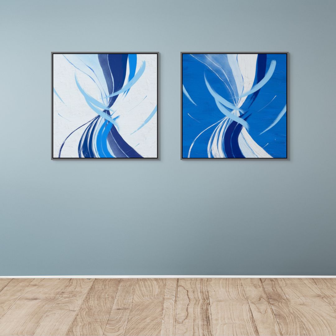 Presented as a diptych of two panels, each available in square formats from 10″ × 10″ to 40″ × 40″, and sold as a set.