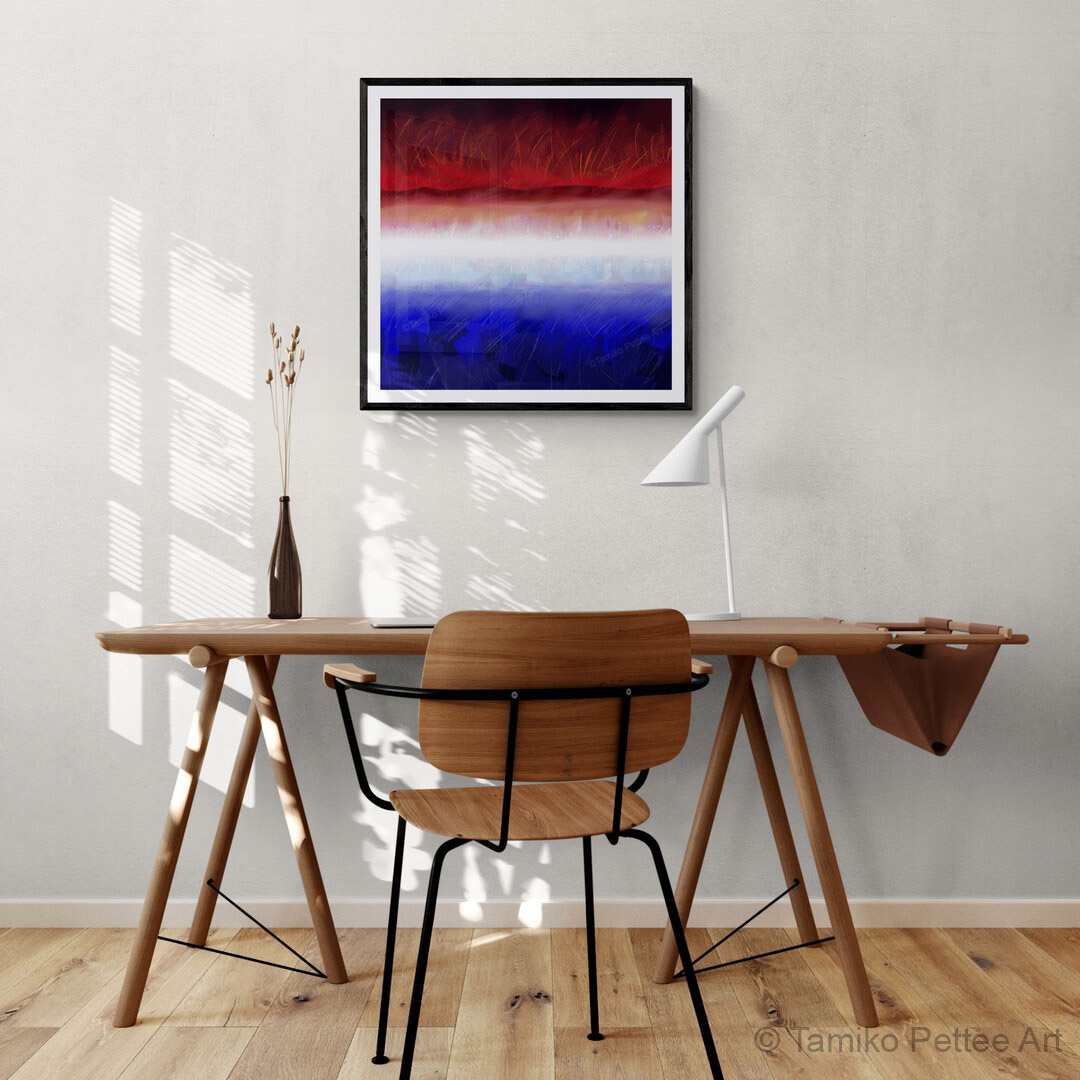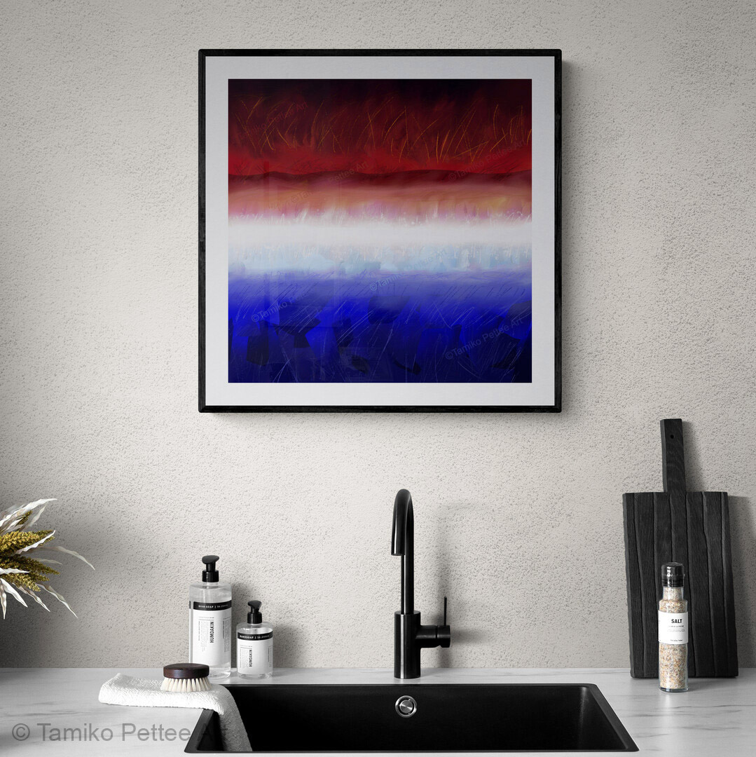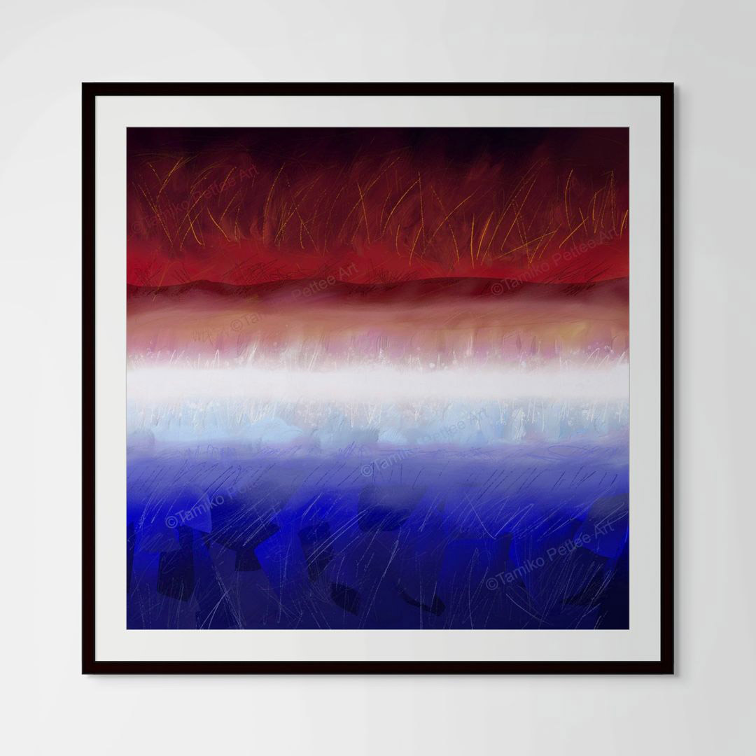 My artwork begins as original compositions, created by hand using digital tools I’ve developed over time. Working with an iPad, computer screen, and stylus—much like traditional brushes and paint—I build each piece through a tactile, intuitive process.